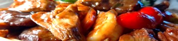 £7.80 - King Prawns & Chicken with Green Pepper in Black Bean Sauce£7.50